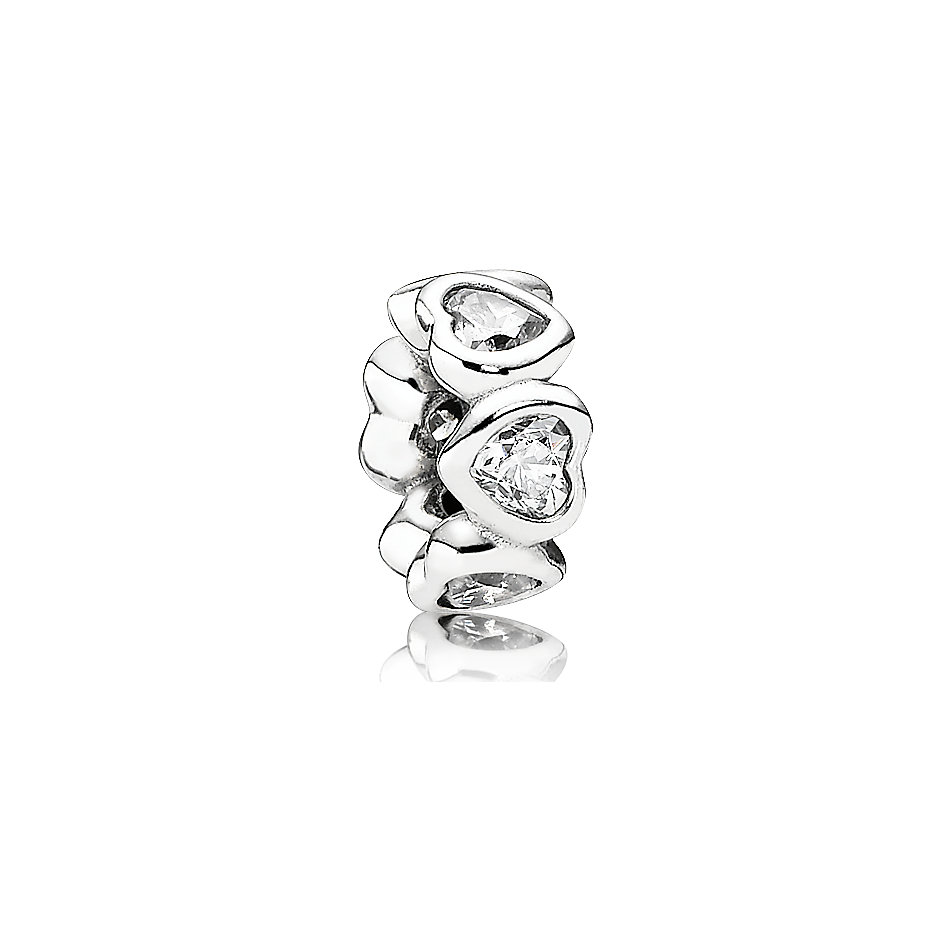 Hopeasta valmistettu Pandora 791252CZ Säihkyvät sydämet-välipala. Palassa on kirkkaita zirkonia-koristekiviä. Pandora helat toimitetaan postikuluitta valmistajan alkuperäisessä lahjapakkauksessa.