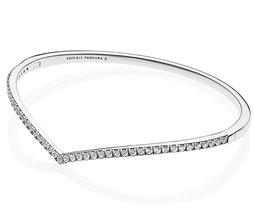 Pandora Shimmering Wish rannekoru 597837CZ kuuluu Pandoran Wishbone mallistoon. Sarjassa toistuu sama kolmiomainen muoto Chevron-muoto, joka symboloi rakkautta. Sterling-hopeasta valmistetussa rannekorussa on saranalukko, joten se on helppo avata ja laittaa ranteeseen. Rannekorua on saatavilla kahta kokoa 16 cm ja 17,5 cm. Pandora korut toimitetaan valmistajan alkuperäisessä pakkauksessa.