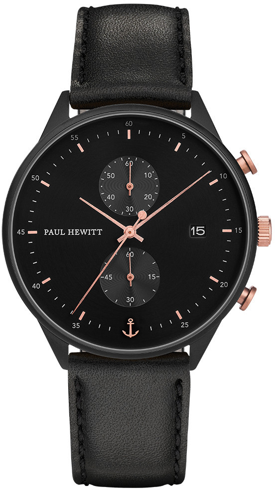 Paul Hewitt Chrono Line PH-C-B-BSR-2M -rannekello antaa täydellisen loppusilauksen huippuunsa hiottuun asukokonaisuuteen. Nuorekas ja moderni design sopiikin juuri sinulle, joka pyrit urallasi eteenpäin ja etsit jatkuvasti uusia haasteita. Tämä malli on varustettu sekuntikellolla, päivyrillä ja safiirilasilla. Teräksisen rungon halkaisija on 42 mm, nahkarannekkeella puolestaan on leveyttä 20 mm. Itsevarmaa mustaa kelloa koristavat tyylikkäät punakullan väriset yksityiskohdat. Tutustu myös sarjan muihin upeisiin tuotteisiin!