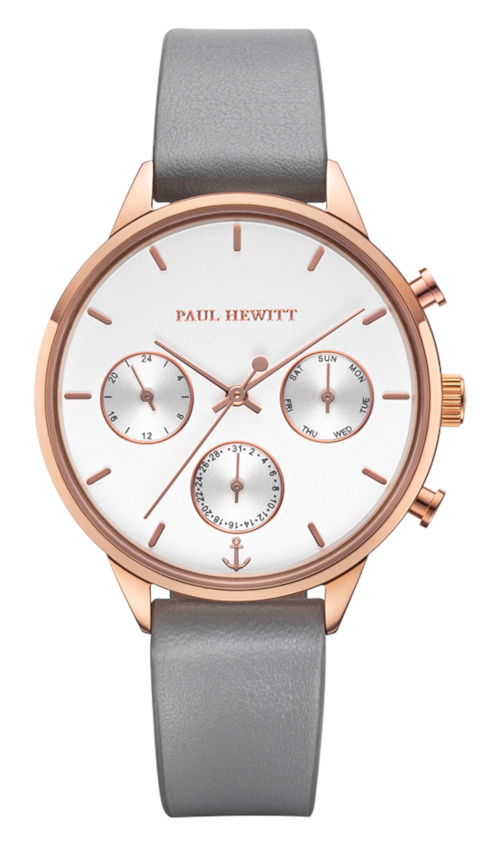 Paul Hewitt Everpulse PH-E-R-W-31S-kello on valmistettu ruostumattomasta teräksestä, ja siinä on monipuoliset ominaisuudet, kuten päivyri ja viikonpäivänäyttö. Kellossa on kaunis helmenvärinen taulu, ruusukullansävyiset osoittimet, naarmuuntumaton safiirilasi ja aito nahkaranneke. Rungon leveys on 38mm, paksuus 9mm ja rannekkeen kiinnityskohdan leveys 16mm. Kellolla on 2 vuoden takuu, ja se toimitetaan valmistajan alkuperäisessä rasiassa.