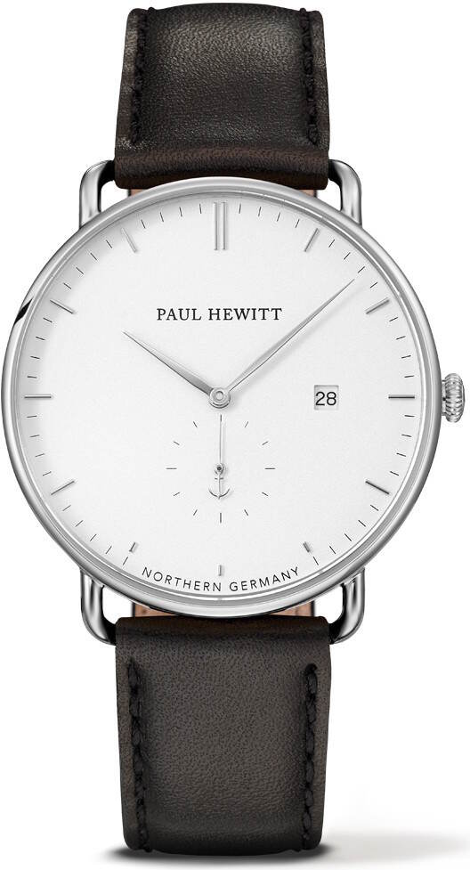 Paul Hewitt Grand Atlantic Line PH-TGA-S-W-2M -kello kuuluu Paul Hewitin Grand Atlantic Line sarjaan, joka on suunnattu erityisesti miehille. Kellon runko on valmistettu ruostumattomasta teräksestä ja se on hopeanvärinen. Runko on leveydeltään 42mm. Kellossa on todella hyvin naarmuuntumista kestävä safiirilasi. Grand Atlantic mallissa on päivyri ja pieni sekuntiosoitin taulu kello kuudessa, jossa on tyylikkäänä yksityiskohtana ankkuriviisari. Tämä kello istuu loistavasti ranteeseen ja 20mm levyisessä mustassa nahkarannekkeessa on perinteinen solkikiinnitys.