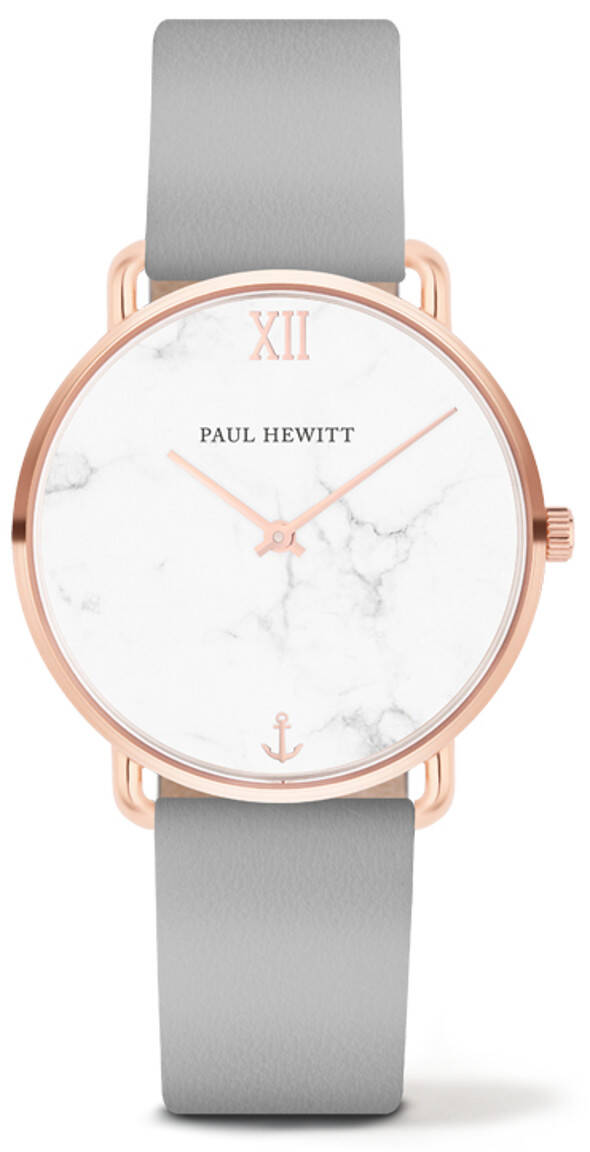 Paul Hewitt PH-M-R-M-31S -kello on osa Paul Hewitin uutta sarjaa. Punakultainen ruostumattomasta teräksestä valmistettu runko ja harmaa nahkaranneke luovat lämpimän värikokonaisuuden. Marmorinen kellotaulu on ehdoton plussa. Kellon rungon leveys on 33mm ja paksuus 6.1mm. Rannekkeen leveys kiinnityskohdassa on 16.3mm. Paul Hewitt -kelloille myönnetään 2 vuoden takuu ja ne toimitetaan valmistajan alkuperäisessä rasiassa.