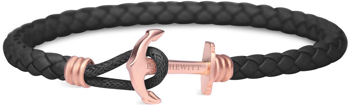 Paul Hewitt PH-PHL-L-R-B Anchor Phrep Lite IP Rose Gold Black rannekoru on valmistettu punotusta mustasta nahasta ja siinä on punakullan värinen teräsankkuri, joka toimii kiinnikkeenä. Ankkuri toimii yksityiskohtana, joka jää mieleen. Helppokäyttöinen ja kevyt koru sopii rentoon tyyliin.