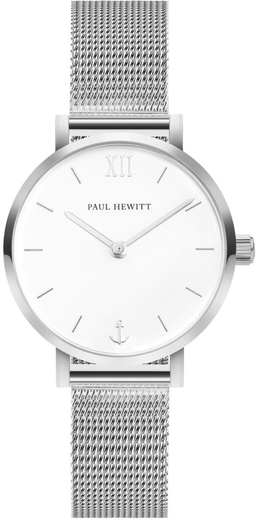Paul Hewittin Sailor Line Modest -mallisto inspiroi rauhallisella muotoilullaan. Kellotaulun maltilliset yksityiskohdat ja siro, 28 mm teräsrunko tekevät tästä kellosta loistavan vaihtoehdon jokapäiväiseen käyttöön. Naarmuilta suojaava safiirilasi ja japanilainen Miyota-koneisto ovat osoituksena myös kellon ensiluokkaisesta laadusta. Värimaailmaltaan White Sand PH-SA-S-XS-W-45S -malli on hopeinen, kauniin valkoisella kellotaululla viimeisteltynä.