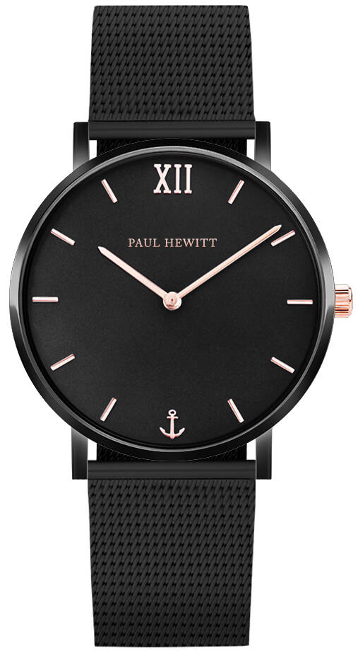 Paul Hewitt Sailor Line PH-SA-B-BSR-4S -rannekellosta huokuu merenkävijän henki! Kellon runko ja ranneke ovat valmistettu mustan väriseksi pinnoitetusta ruostumattomasta teräksestä. Komeuden kruunaa safiirilasilla suojattu musta kellotaulu. Kellon rungon leveys on 39.2mm ja paksuus 7mm. Rannekkeen leveys kiinnityskohdassa on 20mm. Paul Hewitt-kelloille myönnetään 2 vuoden takuu ja ne toimitetaan valmistajan alkuperäisessä pakkauksessa.