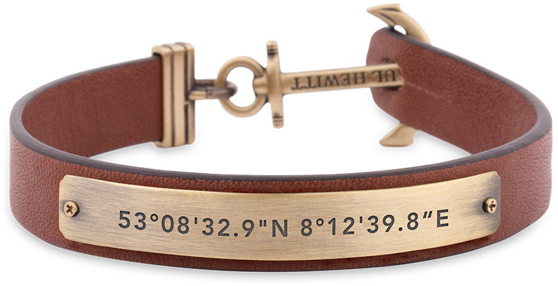 Paatuneemmallekin merikarhulle sopiva Paul Hewittin Signum -mallisto tuo seitsemän meren tyrskyt mukanaan tässä PH-MSC-M-Br-XL Coordinates -rannekorussa. Nahkarannekkeen kullanväriset, ruostumattomasta teräksestä valmistetut yksityiskohdat säestävät kiinnikkeenä toimivaa ankkuria, joka onkin ehdottomasti tämän korun päätähti. Metallilevyyn kaiverretut koordinaatit vievät pohjois-Saksaan, Paul Hewitt -tuotteiden kotikonnuille. Korun pituus 21,5 cm.