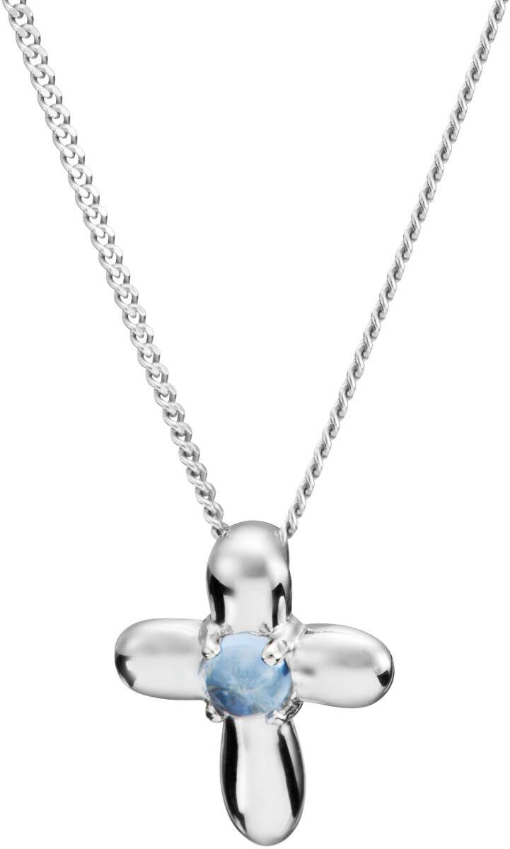 Pirami kaulakoru, kasteristi, sininen lasikristalli. Riipus ja ketju toimitetaan lahjarasiassa. Kaulakoru on tarkoitettu kastelahjaksi, mutta soveltuu myös lahjaksi pienelle pojalle.