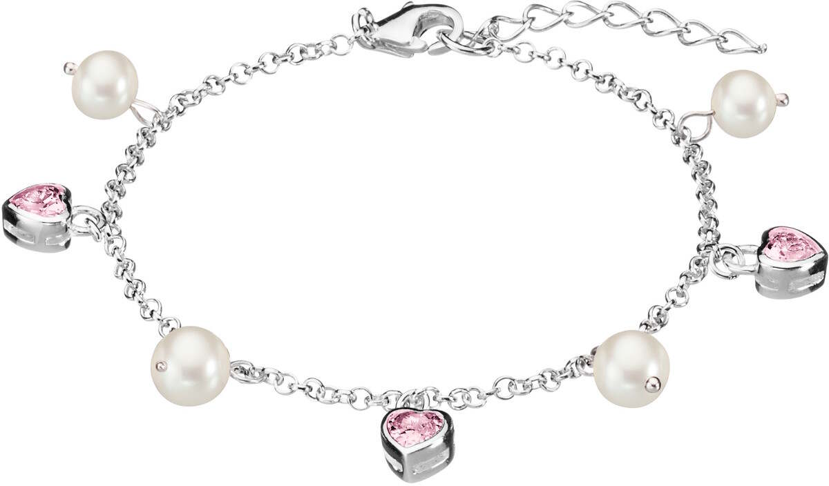 Pirami tyttörannekoru pink. zirkoniasydämillä valkea helmi 14010312