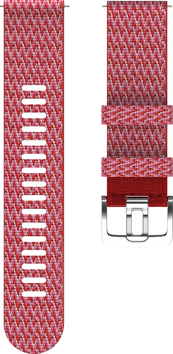 Polar Grit X punainen tekstiiliranneke 91081743 on kierrätettyä PET-lankaa ja sen pinta on hillitysti kuvioitu. Soljen alla oleva joustava osio varmistaa, että ranneke istuu napakasti ja mukavasti ranteessasi. Ranneketta on saatavilla S-kokoisena, jolloin rannekkeen ympärysmitta on 130 - 190 mm. Rannekkeessa on helppokäyttöiset pikalukittavat jousitapit.