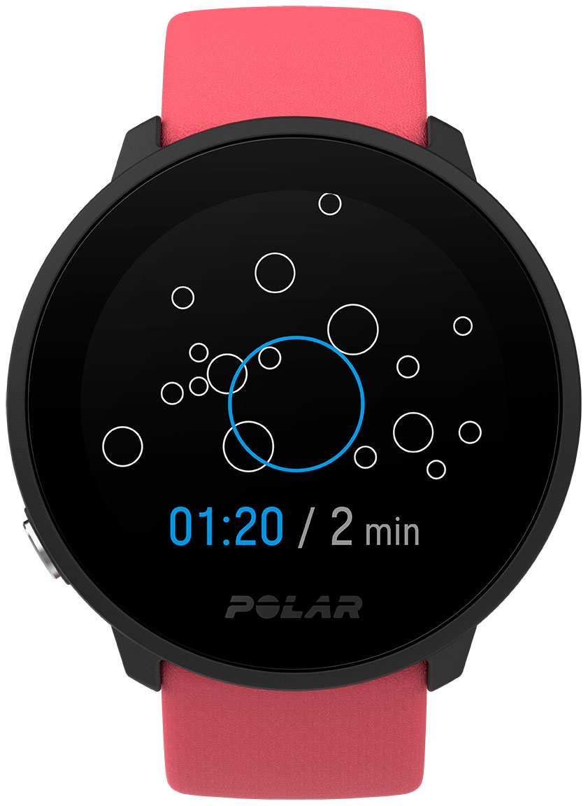 Polar Unite Pink tarjoaa myös työkalut stressin torjuntaan. Serene™ -hengitysharjoitusten avulla pystyt rauhoittamaan mielen myös silloin kun aikaa on vain vähän. Syvähengitys auttaa sinua löytämään mielenrauhan ja tukee kestävyyden kehittämistä sekä keskittymiskyvyn parantamista. Harjoitus on helppo tehdä Serene™:n animoitujen ohjeiden ja kellon antaman värinäpalautteen avulla. Hengitysharjoituksen aikana Serene™ seuraa kehosi reaktiota harjoitukseen antaen sinulle palautetta reaaliajassa. Kattavasta yhteenvedosta pystyt harjoituksen jälkeen tarkastelemaan tuloksiasi, joka on tulkittu aikana jonka vietät kolmella niin sanotulla tyyneysvyöhykkeellä. Tavoitteena on viettää mahdollisimman paljon aikaa korkeimmalla vyöhykkeellä, joka antaa eniten hyötyä pidemmällä aikavälillä.