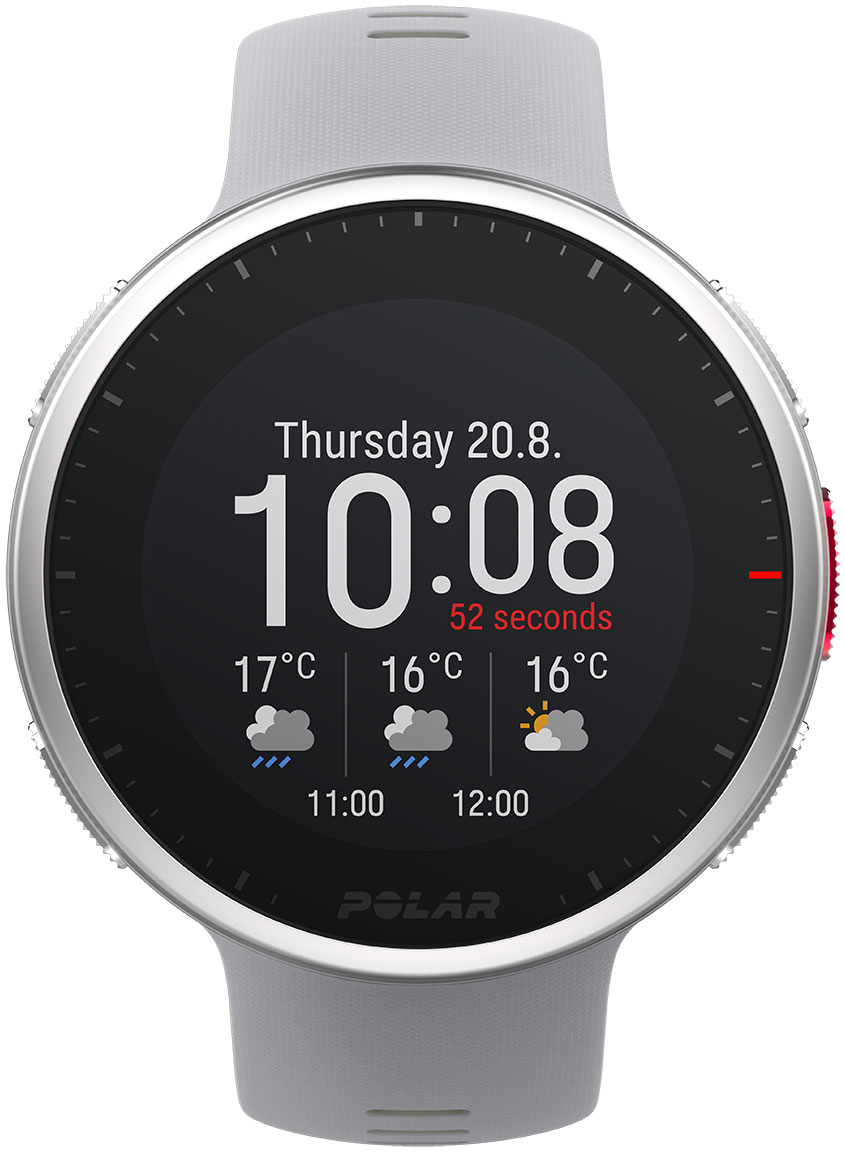 Haluatko lähteä juoksulle tai pyöräilemään, mutta et ole varma millainen keli tulee olemaan? Katso näppärästi ensin päivän säätiedote Polar Vantage V2:n uudella sääilmoitus-ominaisuudella. Sääilmoituksesta näet täsmäsään ja lämpötilan tunneittain.
