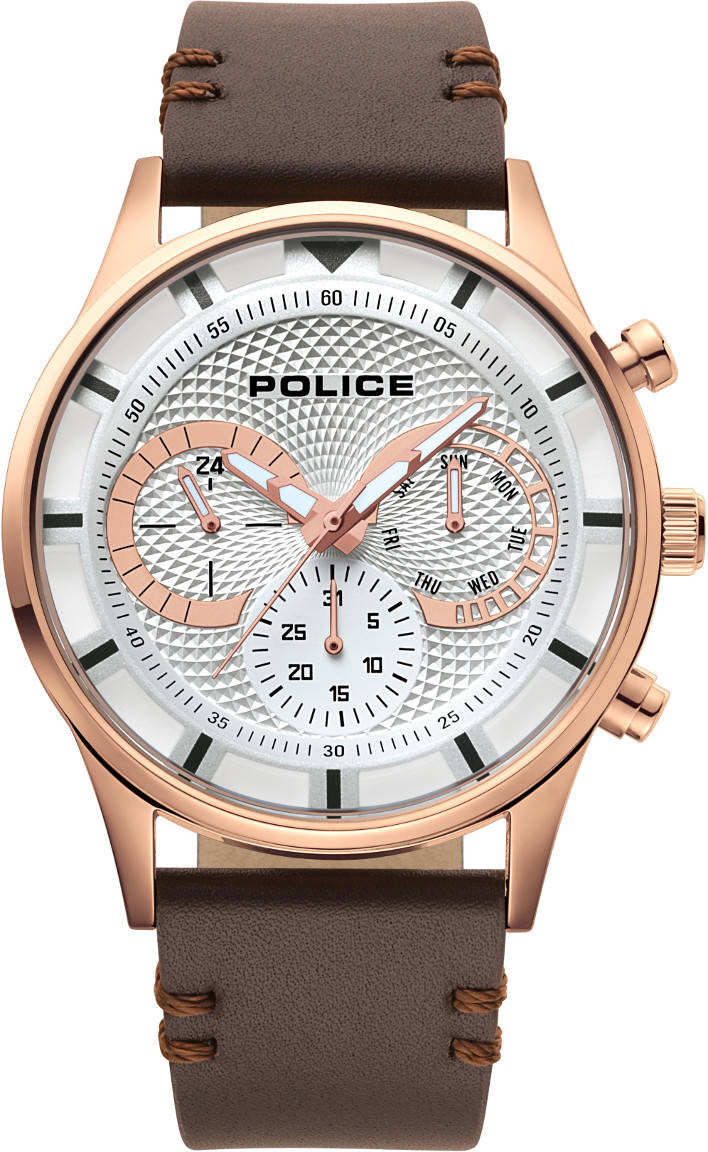Police Driver PL14383JSR/04 on arvovaltainen vieras missä tahansa tilaisuudessa. Tässä ylevässä miesten kellossa runko on 44 mm leveä ja valmistettu ruostumattomasta teräksestä. Ranneke on materiaaliltaan nahkaa. Kellotaulun pienemmiltä kehiltä voit lukea helposti päivämäärän, viikonpäivän ja 24 h ajan. Kellossa on laadukas japanilainen koneisto, joka pitää kutinsa tarkasti viikosta ja kuukaudesta toiseen.