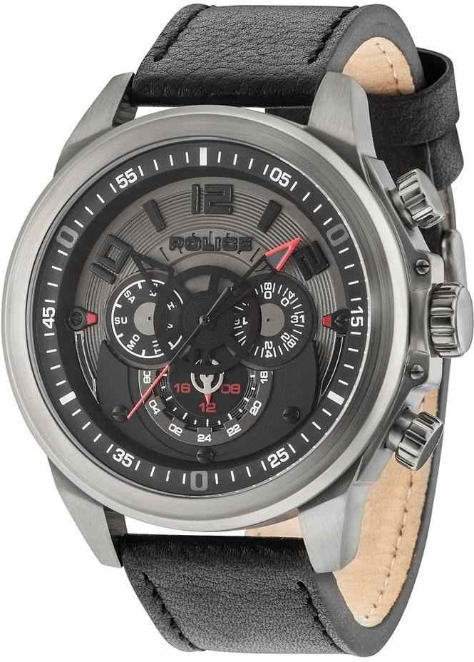 Police PL15036JSU/61 Belmont -kellossa on näytävä tuntiviisari. Tässä mallissa on musta nahkaranneke, tummanharmaa runko ja tummaharmaa kellotaulu. Ominaisuuksina päivyri, viikonpäivänäyttö sekä 24h-näyttö. Kellon rungon leveys on 51mm ja rannekkeen kiinnityskohdan leveys 24mm. Rungon paksuus 14mm. Police kelloille myönnetään 2 vuoden takuu ja ne toimitetaan valmistajan alkuperäisessä rasiassa postikuluitta!