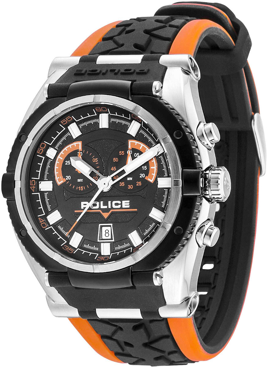 Miesten Police Raptor PL14215JSTB/02A rannekello. Kellon rungon leveys 45mm ja rannekkeen leveys 22mm. Runko on ruostumatonta terästä ja ranneke kumia/silikonia. Kellossa on myös päivyri ja ajanotto. Oranssit yksityiskohdat rannekkeessa ja taulussa tekevät kellosta tyylikkään. Kellolle myönnetään 2 vuoden takuu ja toimitetaan valmistajan alkuperäisessä rasiassa.