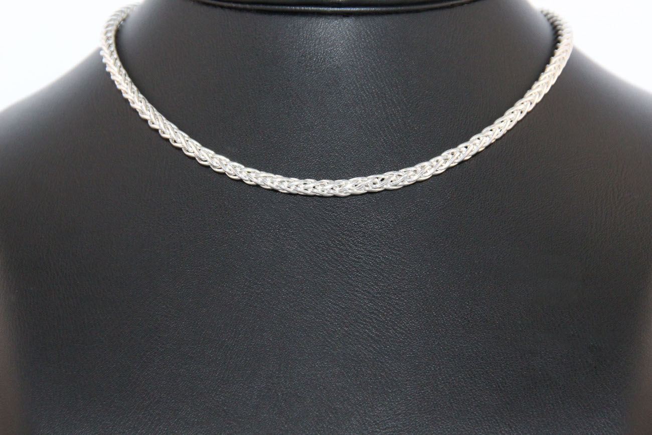 Tässä sterling-hopeisessa PAL050-42-ketjussa on kaunis korupunos, ja ketju sopii käytettäväksi yksinään tai riipuksen kanssa. Punosketjun paksuus on 4,5 mm ja pituus 42 cm.