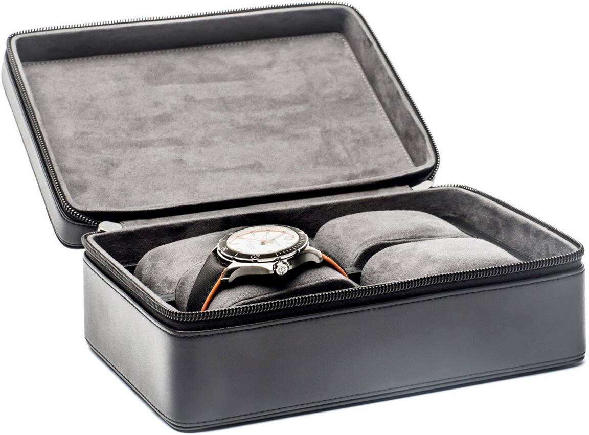 Rhein Fils RF7010-04 -matkapakkauksessa kuljetat rannekellojasi niiden arvolle sopivasti. Laatikko on ulkopuolelta aitoa nahkaa ja sisältä pehmeän samettista kangasta. Laadukas vetoketju tekee tästä pakkauksesta kelloharrastajalle erittäin pitkäikäisen kumppanin. Tähän malliin mahtuu neljä kelloa. Saatavilla myös kahden kellon matkapakkaus.