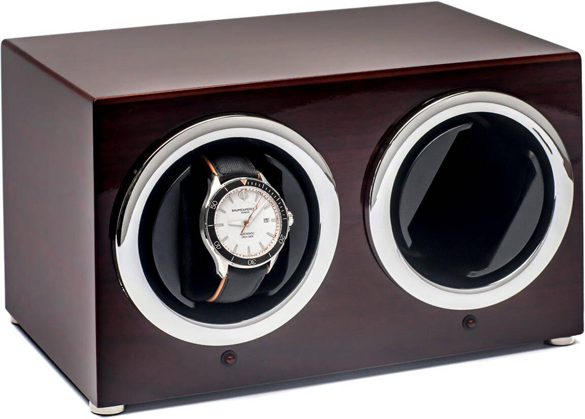 Rhein Fils kellowinder RF7001-02 Double Mahogany on tyylikäs tapa säilyttää automaattikelloja ja pitää ne käyttövalmiina kaikissa tilanteissa. Winder on viimeistelty upean kiiltävään mahongin sävyyn ja se on kooltaan n. 26x15x16 cm (L,K,S). Winderissa on äänetön moottori ja sen pyörimissuunnat voi määrittää joko myötäpäivään, vastapäivään tai vuorotteleviksi. Kellot eivät kuitenkaan pyöri laitteessa koko aikaa, vaan pysyvät välillä myös paikallaan. Pakkaus sisältää puhdistusliinan sekä työkalun pohjan avaamista varten. Saatavilla myös muita laadukkaita Rhein Fils -tuotteita eri väreissä. Löydä omasi!