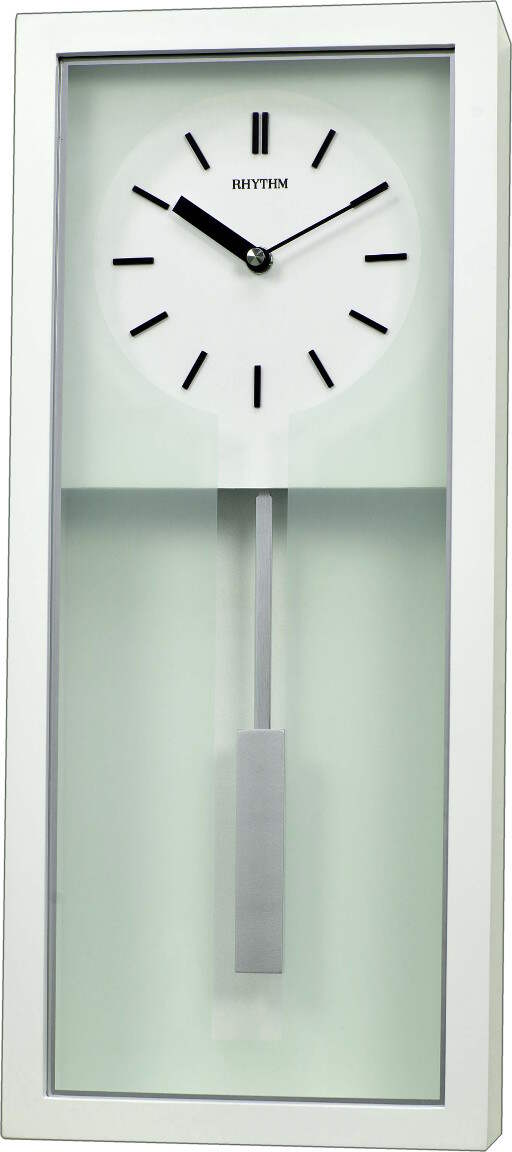 Rhythm heilurikello CMP548-NR03 on tyylikäs paristolla toimiva heilurikello. Kello on puuta ja se on väriltään valkoinen. Korkeus 47,8cm, leveys 20,5cm ja paksuus 7,5cm. Painoa kellolla on 2,15 kiloa. Pakkaus sisältää kaksi AA-paristoa. Laadukkaille Rhythm kelloille myönnetään vuoden takuu.