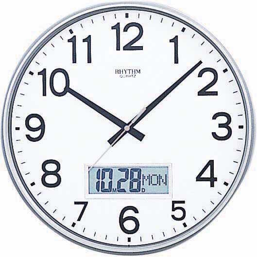 Rhythm CFG706-NR19 seinäkellossa on erittäin selkeä kellotaulu. Kellossa on liukuva sekuntiosoitin sekä digitaalinen kalenteri. Muovista valmistettu pyöreän rungon halkaisija on 32 cm ja paksuus 4,8 cm. Kellon paino on 795 g. Pakkaus sisältää kaksi kappaletta AA-paristoja. Laadukkaille Rhythm tuotteille myönnetään vuoden takuu.