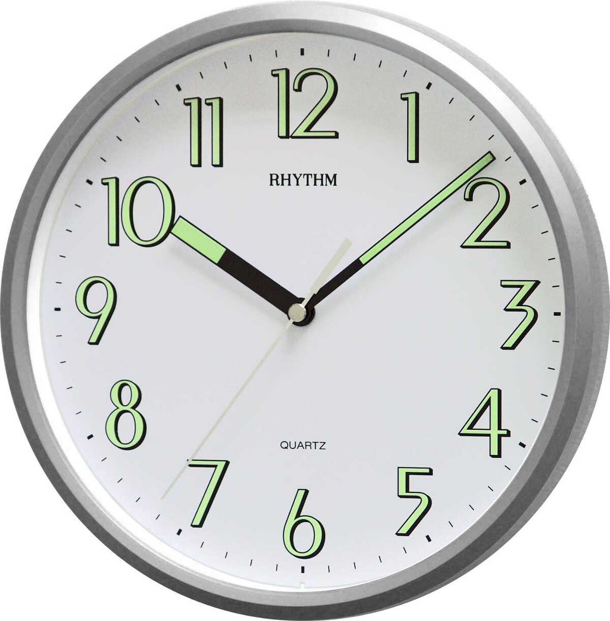 Rhythm CMG727-NR19 seinäkellossa on pimeässä hohtavat loisteosoittimet ja -numerot. Muovista valmistetun kellon halkaisija on 24 cm ja paksuus 4,5 cm. Kellon paino on 420 g. Pakkaus sisältää AA-pariston. Laadukkaille Rhythm kelloille myönnetään vuoden takuu.