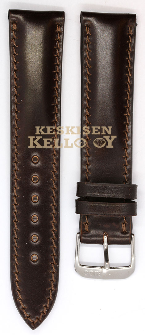 Rios1931 Chicago 1980720/18M on mokanruskea nahkaranneke, joka on valmistettu aidosta shell cordovan -nahasta eli hevosen takapuolen nahasta. Rannekkeen leveys on 20 mm ja sen pituus on 114/82 mm. Voit valita rannekkeeseen joko hopean tai kultaisen soljen.