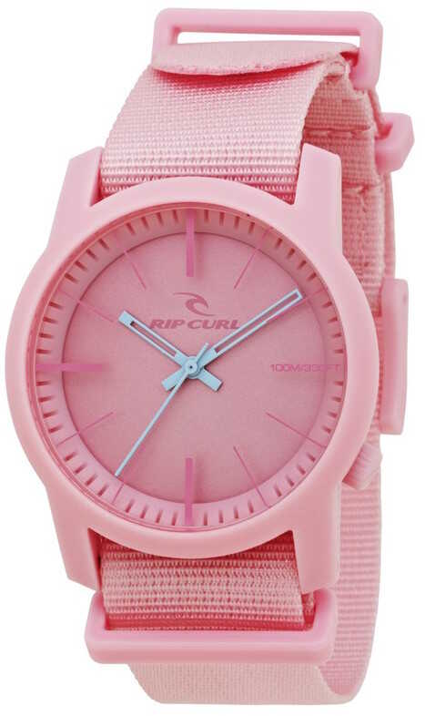 Naisten Rip Curl Cambridge A2611G rannekello. Runko on valmistettu muovista ja ranneke kangasta/nylonia. Kellon runko ja ranneke ovat pinkit. Rungon leveys on 40mm ja rannekkeen leveys on 22mm. Valkoiset viisarit luovat muuten pinkkiin kelloon tyylikkään sekä sporttisen ilmeen. Rip Curl kelloille myönnetään 5 vuoden takuu ja ne toimitetaan valmistajan alkuperäisessä rasiassa.