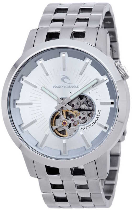 Miesten Rip Curl Mid Detroit Automatic A2593 rannekello. Runko ja ranneke on valmistettu ruostumattomasta teräksestä ja hopean väriset. Rungon leveys on 45mm ja rannekkeen leveys on 22mm. Rip Curl kelloille myönnetään 5 vuoden takuu ja ne toimitetaan valmistajan alkuperäisessä rasiassa.