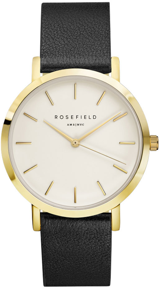 Tässä kauniissa Rosefield Gramercy GWBLG-G32 rannekellossa on mustasta nahkasta valmistettu sileäpintainen 18mm levyinen ranneke. Manhattalais -tyylinen kellosarja on saanut vaikutteensa huolettomasta elämästä ja selkeistä linjoista. 38mm levyinen ja 8mm paksu kellorunko on väritykseltään kultainen. Tämä kello on juhlallinen ja sopii näin loistavasti erilaisiin illanviettoihin.