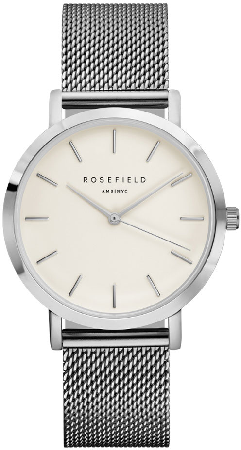 Rosefield Mercer MWS-M40 White - Silver rannekello omaa ruostumattomasta teräksestä valmisetetun mesh-rannekkeen, joka muotoutuu ranteeseen täydellisesti. Valkoinen kellotaulu on pelkistetty ja kellon rungon halkaisija on 38mm. Paksuutta rungolla on 8mm. Rannekkeen leveys on 18mm ja sen pituuden saa säädettyä juuri sinulle sopivaksi välillä 15,5-20cm.