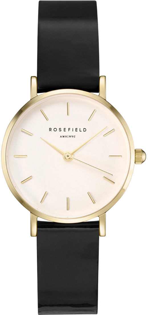 Rosefield Premium Gloss -mallisto edustaa aitoa New Yorkilaista tyyliä. Täysin poikkeuksellinen kiiltävä ranneke antaa kelloille erittäin raikkaan ja hehkuvan olemuksen. Rannekkeet on valmistettu vegaaninahasta, mikä tekeekin sarjan kelloista hyvin eläin- ja ympäristöystävällisiä. 26 mm leveä ja ainoastaan 6,5 mm paksu runko on valmistettu messingistä. Sisältä löytyy laadukas japanilainen Miyota-koneisto. Black/Gold -mallissa runko on kullanvärinen ja ranneke tyylikkään musta. Ranneke on 12 mm leveä ja säädettävissä 12 - 16,6 cm pituuteen, joten tämä kello sopii täydellisesti kaikkein siroimpiinkin ranteisiin! Saatavilla myös 33 mm rungolla sekä muissa upeissa väreissä. Tutustu kaikkiin!