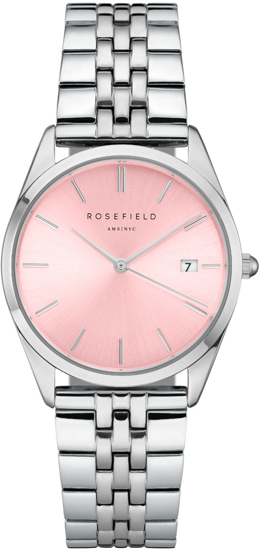 Rosefield The Ace ACPG-A05 -rannekello on todellinen ässä hihassa - kirjaimellisesti! Hopeanvärisessä Pink Sunray/Silver -mallissa runko on leveydeltään 33 mm. Messinkinen runko pitää sisällään luotettavan japanilaisen Miyota-koneiston. 18 mm ranneke on erittäin laadukkaan tuntuinen ja myös säädettävissä 12,2 - 19 cm pituuteen. Kokonaisuuden viimeistelee vaaleanpunainen sunray-kellotaulu, josta löytyy lisäominaisuutena myös kätevä päivyrinäyttö.