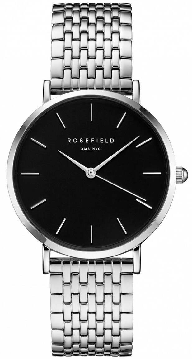 Rosefield UEBS-U25 The Upper East Side Black Silver -kellossa on hopeanvärinen teräsranneke sekä hopeanvärinen runko. Kellotaulu on musta ja siinä on hopean väriset indeksit. Kellon rungon leveys on 33mm ja paksuus 7mm. Rannekkeen pituus on säädettävissä välillä 13-19cm.