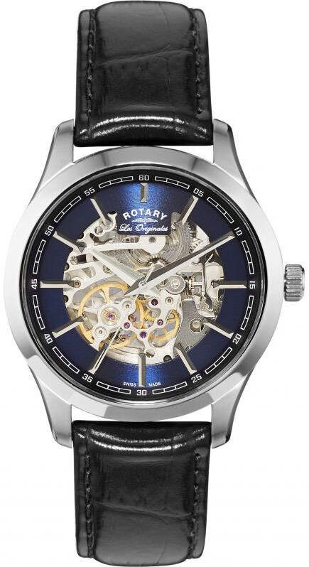 Rotary Automatic Skeleton kello GS90525/05 virittyy käden liikkeistä, jolloin kellossa oleva vetopaino virittää vetojousta heiluessaan. Kellossa on Rotaryn Calibre R.1000.21 automaattikoniesto, jota voidaan vetää myös käsin. Kellossa on näyttävä skeleton kellotaulu, jonka läpi näkyy kellon koneisto. Kellon rungon leveys on 40mm ja paksuus 13mm. Tämä laadukas Rotary-automaattikello on valmistettu Sveitsissä ja kellossa on kestävä, lähes naarmuuntumaton safiirilasi. Laadukkaat sveitsiläiset Rotary-rannekellot toimitetaan valmistajan alkuperäisessä rasiassa!