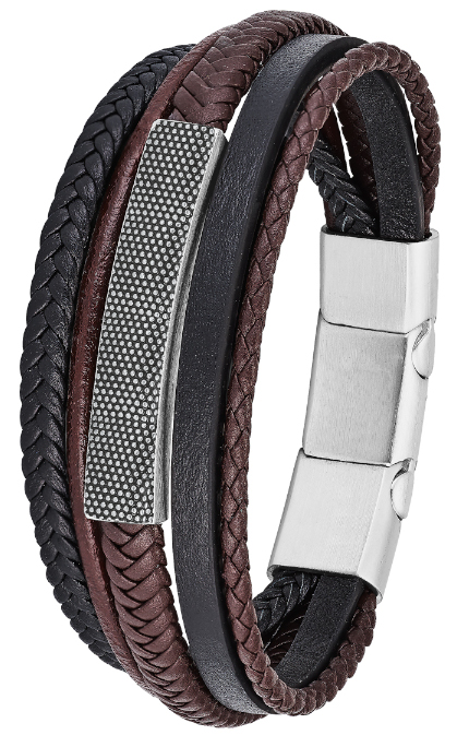 Miesten S. Oliver 2026110-rannekoru muodustuu useasta erikokoisesta ja värisestä nahkanauhasta, jotka on kiinnitetty säädettävään teräslukkoon. Korun edustassa on musta taottu laatta, jonka leveys on 41 mm, ja jonka taka-osaan on mahdollista kaivertaa viesti korun käyttäjälle. Rannekoru on säädettävissä 20-21,5 cm pituuteen. S.Oliver-korut toimitetaan valmistajan alkuperäisessä rasiassa.