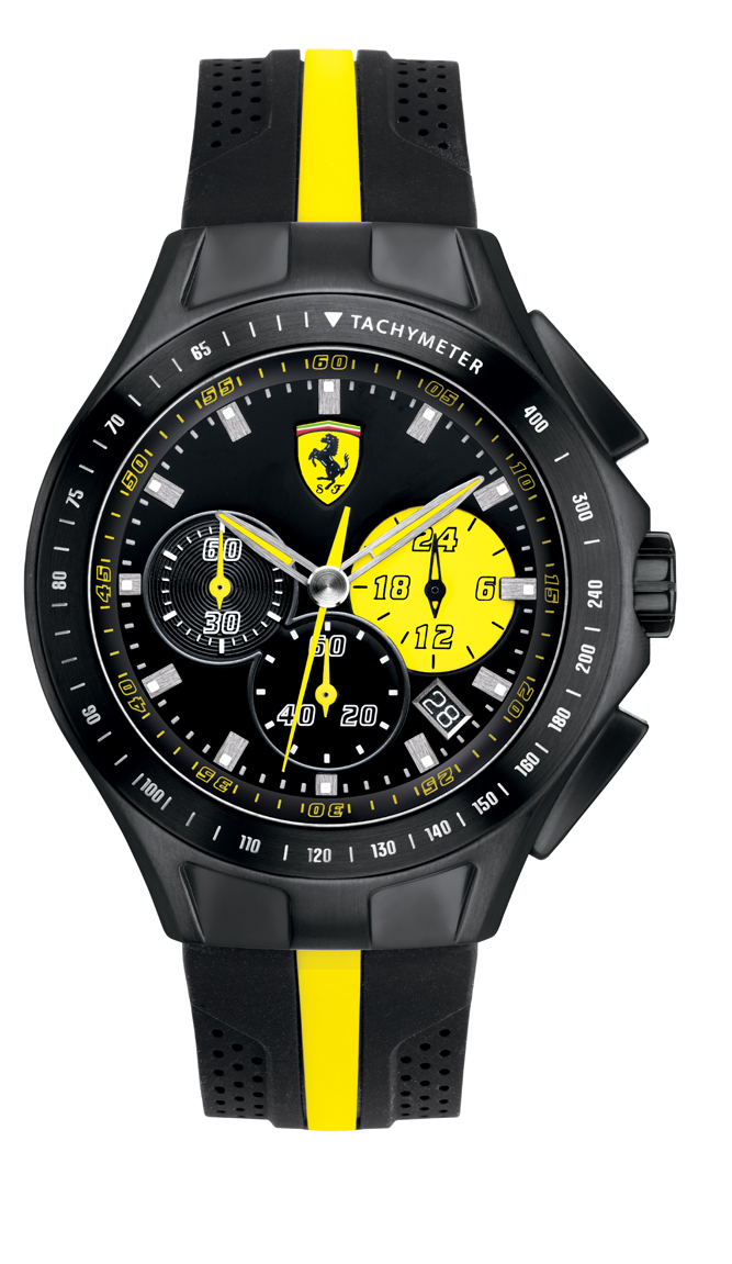 Scuderia Ferrari 0830025 miesten rannekello. Rungon leveys 44mm ja rannekkeen leveys 20mm. Kellossa on tyylikäs musta ranneke keltaisilla yksityiskohdilla ja musta runko. Kellossa on myös päivyri ja ajanotto. Ferrari kelloille myönnetään 2 vuoden takuu. Toimitetaan valmistajan alkuperäisessä rasiassa.