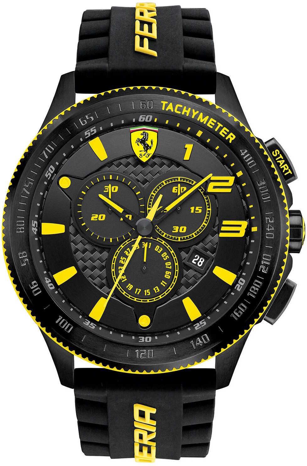 Miesten Scuderia Ferrari 0830139 rannekello. Runko on valmistettu ruostumattomasta teräksestä ja ranneke on kumia/silikonia. Kellon rungon leveys on 48mm ja rannekkeen 21mm. Kellossa on ajanotto sekä päivyri. Keltaiset yksityiskohdat taulussa ja rannekkeessa tekevät kellosta tyylikkään ja näyttävän. Scuderia Ferrari kelloille myönnetään 2 vuoden takuu ja ne toimitetaan valmistajan alkuperäisessä rasiassa.
