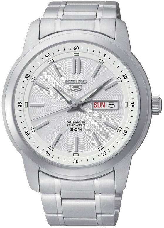Seiko 5 Automatic SNKM83K1 -kellossa on hopeanvärinen kellotaulu ja teräsranneke. Kellon kaksoispäivyristä näet viikonpäivän ja päivyksen yhdellä silmäyksellä. Kellossa on Seiko Cal.7S26 automaattikoneisto. Kellon rungon leveys 43mm. Seiko kelloille myönnetään 2 vuoden takuu ja ne toimitetaan valmistajan alkuperäisessä rasiassa.