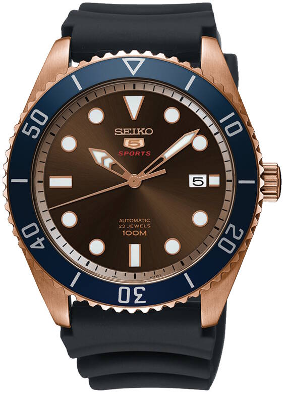 Seiko 5 Sports Automatic SRPB96K1 on tyylikäs automaatiikello, jossa luminoituvat indeksit. Tässä mallissa on musta silikoniranneke, punkullanvärinen runko ja ruskea kellotaulu. Kello saa käyntivoimansa Seikon 24 kivisestä 4R35 -automaattikoneistosta, jonka voi vetää myös manuaalisesti. Rungon leveys on 43,3mm. Laadukkaille Seiko -kelloilla myönnetään 2 vuoden takuu ja tuote toimitetaan valmistajan alkuperäisessä rasiassa.