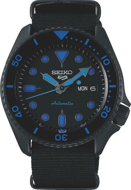 Seikon supersuositusta SKX-sarjasta vaikutteensa saanut uudistunut SEIKO 5 Sports Street SRPD81K1 Automatic-rannekello on väritykseltään täysin musta ja siinä on 42,5 mm leveä teräsrunko ja tekstiiliranneke. Taulua reunustaa pyörivä kellokehä ja osoittimet ja yksityiskohdat ovat sähäkän siniset. Kellon lumibrite-päällystetyt osoittimet ja indeksit luminoituvat valossa, jonka vuoksi kellon lukeminen onnistuu myös pimeässä. Kellotaulusta löytyy viikon- ja päivämääränäyttö ja kirkas takakansi paljastaa 24-kivisen 4R36-automaattikoneiston, jossa on 41 tunnin käyntivara. SRPD81K1 kuuluu vesitiiviysluokkaan 10 atm / 100 m ja on uintitiivis.