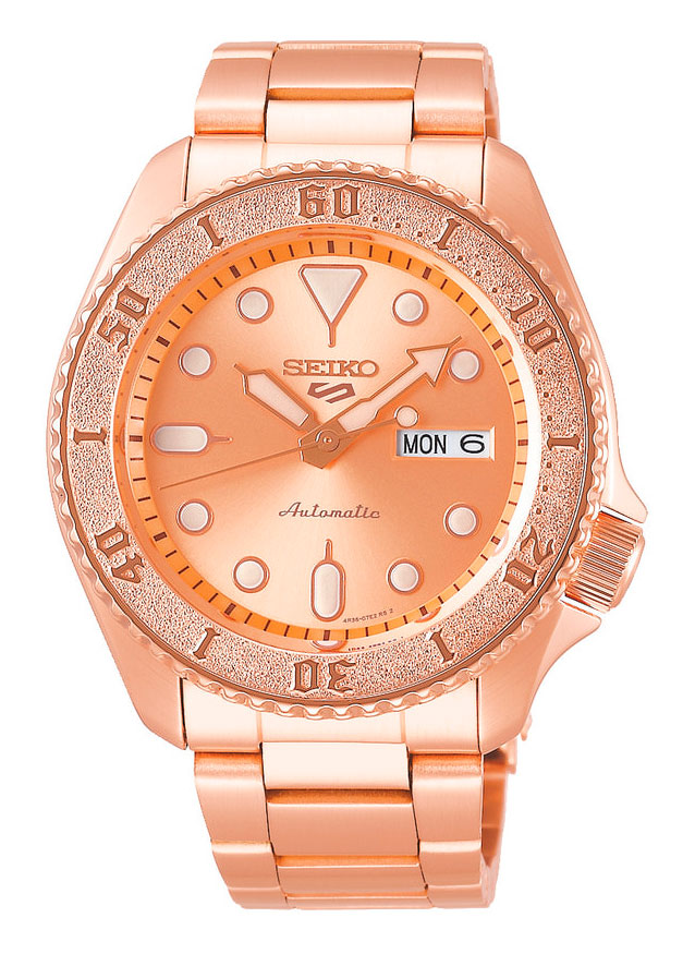 Seiko 5 Street SRPE72K1 on näyttävä miesten automaattikello. Kello on kokonaan väriltään punakultainen ja se on valmistettu ruostumattomasta teräksestä. Kellossa on 42,5 mm leveä runko ja kellotaulua suojaa Seikon kehittelemä Hardlex-lasi. Kellon lumibrite-päällystetyt osoittimet ja indeksit luminoituvat valossa, jonka vuoksi kellon lukeminen onnistuu myös pimeässä. Kellosta löytyy viikon- ja päivämääränäyttö, pyörivä kellokehä ja kirkas takakansi paljastaa automaattikoneiston, jossa on 41 tunnin käyntivara. Koneiston voi vetää myös käsin ja sen käyntitaajuus on 21 600 värähdystä tunnissa. SRPE72K1 kuuluu vesitiiviysluokkaan 10 atm / 100 m ja on uintitiivis.