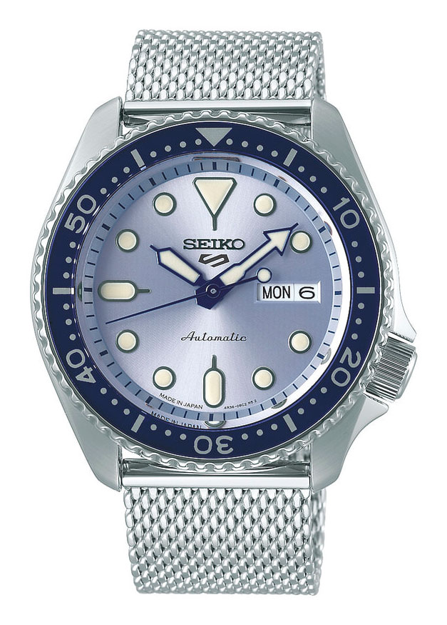 Seiko 5 Suit SRPE77K1 on näyttävä miesten automaattikello mesh-rannekkeella. Kellossa on 42,5 mm leveä teräsrunko ja sininen kellotaulu, jota suojaa Seikon kehittelemä Hardlex-lasi. Kellotaulua kiertää sininen kellokehä. Kellon lumibrite-päällystetyt osoittimet ja indeksit luminoituvat valossa, jonka vuoksi kellon lukeminen onnistuu myös pimeässä. Kellosta löytyy viikon- ja päivämääränäyttö, pyörivä kellokehä minuuttimerkinnöillä ja kirkas takakansi paljastaa automaattikoneiston, jossa on 41 tunnin käyntivara. Koneiston voi vetää myös käsin ja sen käyntitaajuus on 21 600 värähdystä tunnissa. Ranneke on väriltään hopea ja se on valmistettu ruostumattomasta teräksestä. SRPE77K1 kuuluu vesitiiviysluokkaan 10 atm / 100 m ja on uintitiivis.
