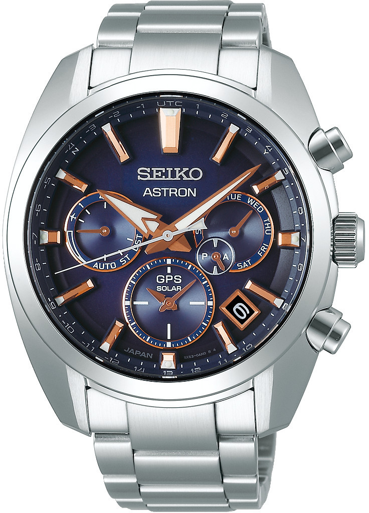 Seiko Astron GPS Solar SSH049J1 Dual-Time Sport Steel. Tässä mallissa on hopeanvärinen teräksestä valmistettu runko sekä ranneke. Kellotaulu on sininen. SH049J1-kellossa koneisto on kaliiperia 5X53, eli ehdotonta eliittiä nykypäivän kellomarkkinoilla!