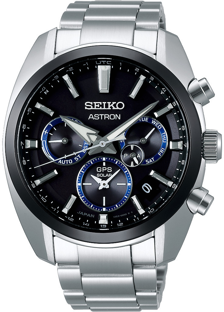 Seiko Astron GPS Solar SSH053J1 Dual-Time Sport Steel. Tässä mallissa on hopeanvärinen teräksestä valmistettu runko sekä ranneke. Kellotaulu on musta. SH053J1-kellossa koneisto on kaliiperia 5X53, eli ehdotonta eliittiä nykypäivän kellomarkkinoilla!
