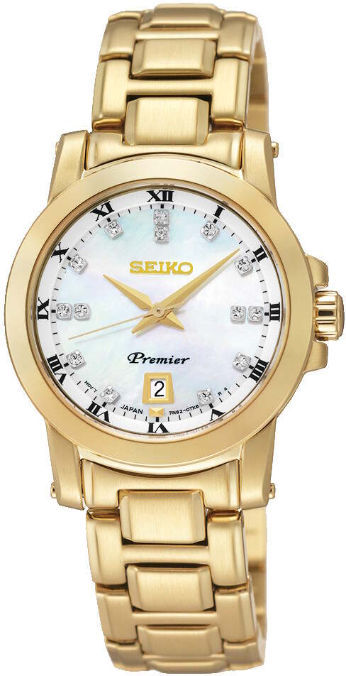 Seiko Premier Diamond SXDG04P1 kuuluu Seikon huippulaadukkaaseen Premier sarjaan. Kello on kullanvärinen ja sen vaaleassa helmiäiskellotaulussa on 11 aitoa timanttia. Kellon rungon leveys on 28mm ja paksuus 8mm. Rannekkeen leveys kiinnityskohdasta on 16mm. Laadukkaille Seiko kelloille myönnetään 2 vuoden takuu ja ne toimitetaan valmistajan alkuperäisessä rasiassa.