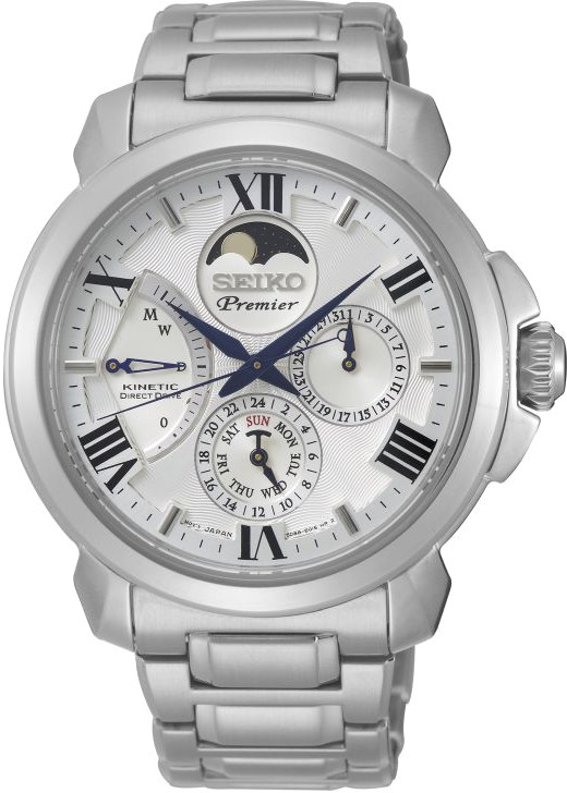 Seiko Premier Kinetic SRX015P1 tuo ranteeseesi välimerellisen tuulahduksen! Tässä mallissa värimaailma on lähtöisin kreikkalaisesta rantamaisemasta valkoisine taloineen. Liike-energialla toimiva koneisto on Seikon omaa 5D88-kaliiperia, josta kiviä löytyy 12 kpl. Kello on valmistettu ruostumattomasta teräksestä ja sen kellotaulua suojaa kestävä safiirilasi. Taulua sävyttävät päivämäärän, viikonpäivän ja 24 h osoittimet, kuunvaihenäyttö sekä käyntivaran ilmaisin. Tiivis 42,5 mm runko kestää mainiosti myös uimista.