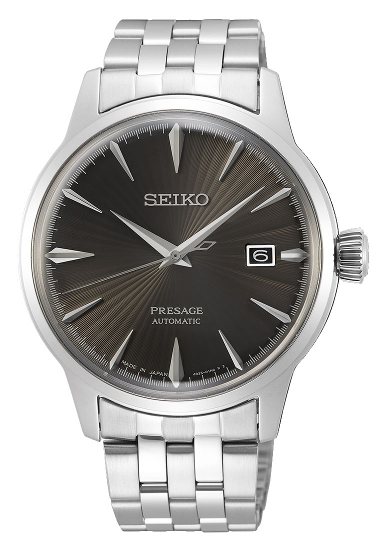 Seiko Presage Automatic Cocktail Time Espresso Martini SRPE17J1 on äärettömän tyylikäs rannekello. Värimaailmaltaan SRPE17J1 muistuttaa Espresso Martini -cocktailia. Ulkomuoto rakentuu 40,5 mm leveästä teräsrungosta, teräsrannekkeesta, jossa kaksi kiillotettua raitaa sekä ruskeasta sunburst-kellotaulusta. Kellon koneisto on kaliiperiltaan 4R35, eli siinä on 23 kiveä ja n. 41 h käyntivara. Kellotaulua suojaa hardlex-mineraalilasi ja myös rungon takakansi on lasipintainen, tarjoten mainion näkymän koneiston hienovaraiseen mekaniikkaan.