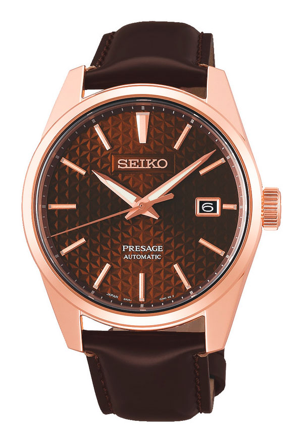 Seiko Presage Automatic SPB170J1 -automaattikello punakullan värisellä teräsrungolla ja tummanruskealla nahkarannekkeella. Kellossa on 24-kivinen 6R35-automaattikoneisto 70 tunnin käyntivaralla, jonka voi vetää myös käsin. Ruskea upeasti kuvioitu kellotaulu herättää huomion ja selkeät osoittimet sekä indeksit kertovan ajan näppärästi. Minuutti- ja tuntiviisarit ovat luminoidut, joten ne hohtavat pimeässä. Kellotaulua suojaa kaareva safiirilasi. Kello kolmen kohdalla on päivyri. Teräsrunko on leveydeltään 39,3 mm. Vesitiiveys on tässä kellossa 100m / 10atm eli se on vesitiivis. Soveltuu pintauintikäyttöön ja snorkkelisukellukseen, ei laitesukellukseen. Kaikille Seiko-kelloille myönnetään kahden vuoden takuu ja ne toimitetaan valmistajan alkuperäisessä pakkauksessa.