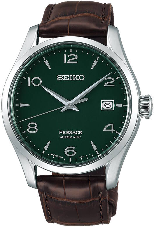 Seiko Presage Green Enamel Dial Limited Edition SPB111J1. Japanilaista käsityötaitoa Seikon kelloissa tunnetusti riittää, eikä tämäkään malli tee sääntöön poikkeusta. Vihreä kellotaulu on valmistettu emalista todella korkeassa lämpötilassa. Taulun on valmistanut tämä alan erikoisosaaja Mitsuru Yokosawa.