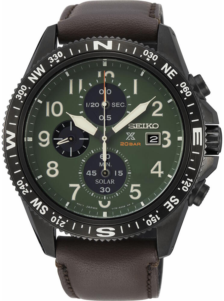 Seiko Prospex Solar Chronograph Land SSC739P1 -rannekellossa on komea metsänvihreä taulu, josta löytyvät kuvioinnin lisäksi myös päivyri sekä kirkkaasti luminoituvat viisarit ja indeksit. Sekuntikellolla mittaat aikaa tarkasti ja ennen kaikkea vaivatta. Rakenteeltaan SSC739P1 on ensiluokkainen: 44 mm teräsrunko, laadukas nahkaranneke ja kestävä hardlex-mineraalilasi varmistavat luotettavan käyttökokemuksen vielä vuosienkin päästä. 100 m vesitiiveyden ansiosta kello kädessä voit pulahtaa huoletta myös uimaan. Mainion kokonaisuuden viimeistelee aurinkoenergialla toimiva V176-kaliiperin koneisto.