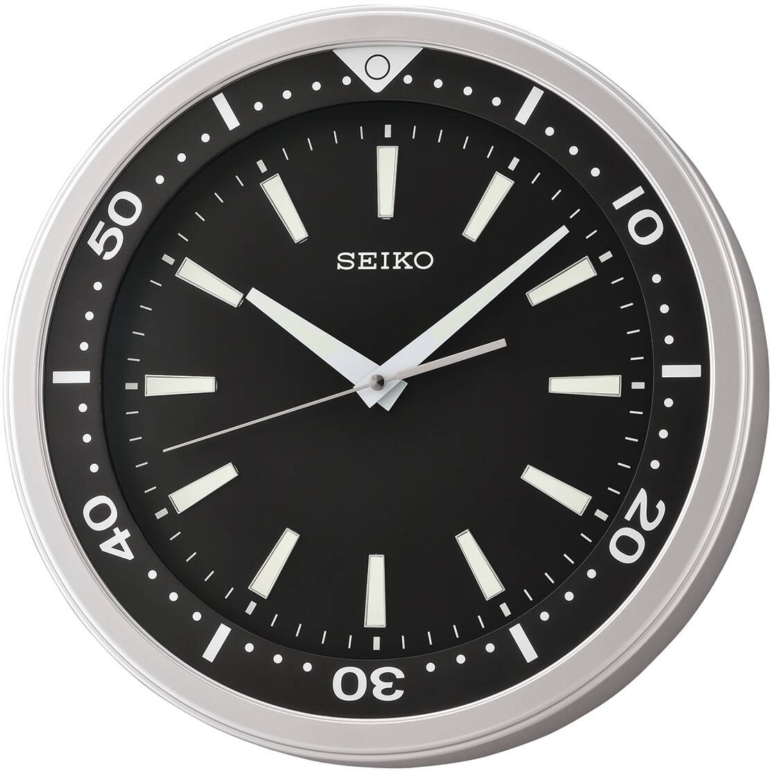 Seiko QXA723A seinäkello 35cm musta kellotaulu, jossa 3D -indeksit. Tässä mallissa on hiljainen ja tasaisesti liikkuva "sweep" -sekuntiosoitin. Indeksit ja viisarit ovat luminoituvat eli hohtavat hetken aikaa valojen sammuttua. Kello toimii yhdellä AA-paristolla, joka sisältyy myyntipakkaukseen. Kellon halkaisija on 35cm ja paksuus 5,4cm. Kello on valmistettu muovista. Laadukkaille Seiko -seinäkelloille myönnetään yhden vuoden takuu.